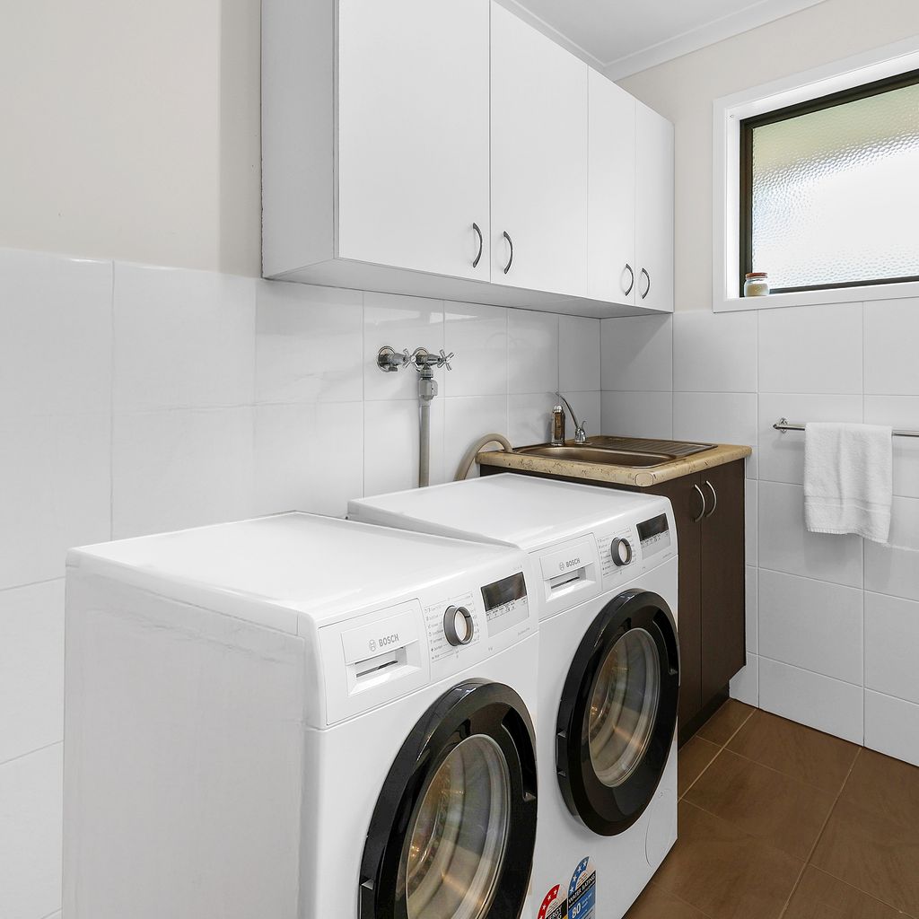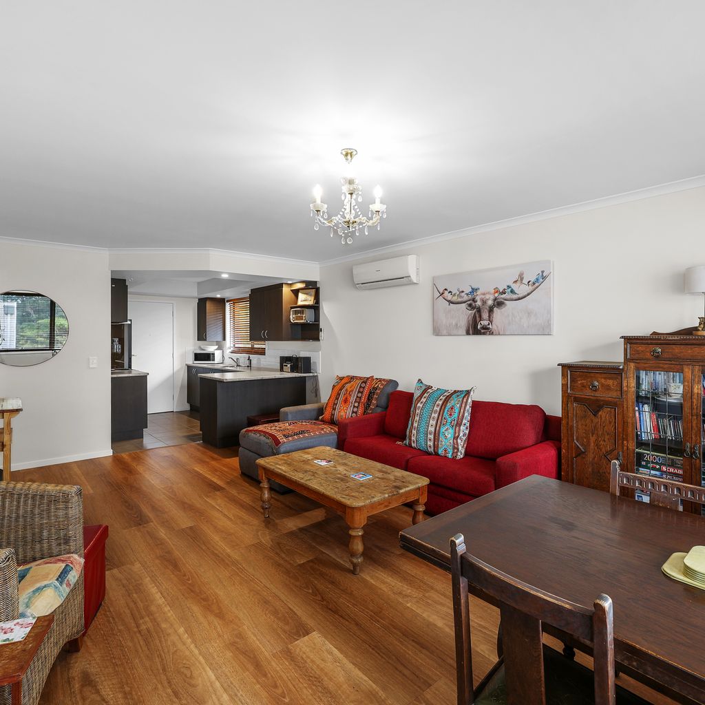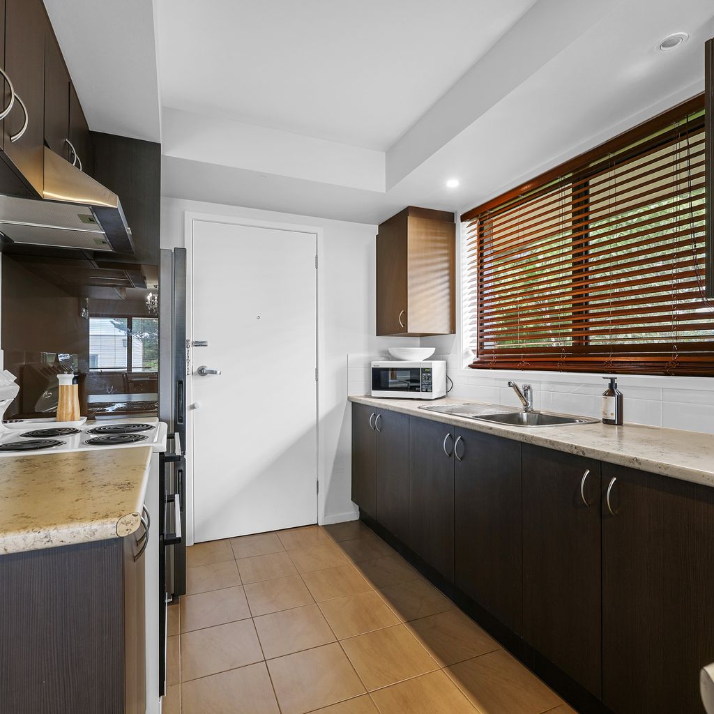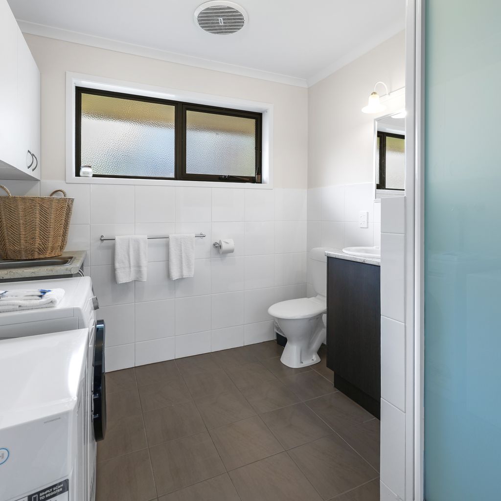 Entry and parking are available via Bayview Terrace. Step inside to a comfortable open-plan living, dining, and kitchen area that’s ideal for unwinding after a day exploring the beach or local shops. The kitchen is equipped with all the expect mod cons with plenty of cupboard and counter space.
