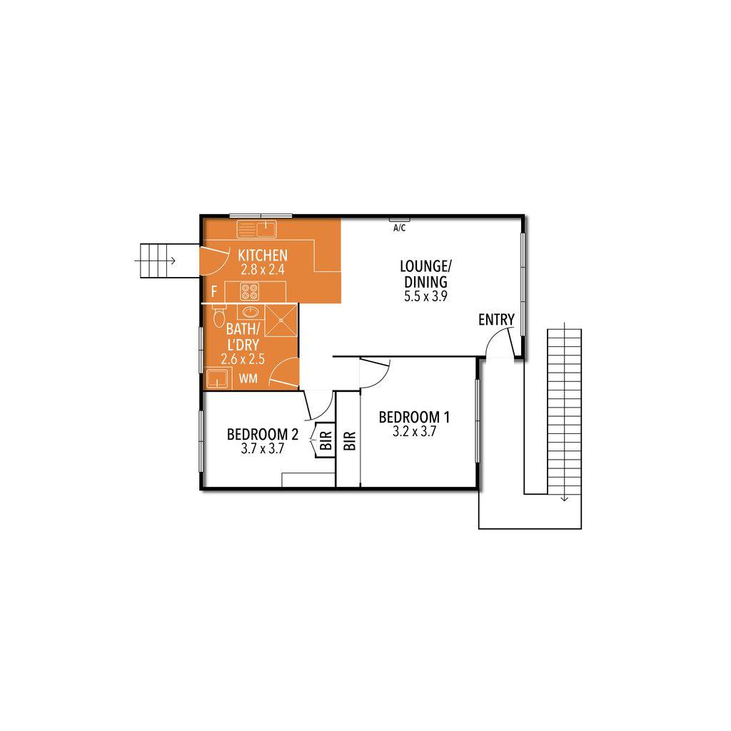 The main bedroom features a queen bed, while the second offers a single—perfect for a couple, small family or a couple of friends. The bathroom includes a shower and toilet, and you’ll also have access to a washing machine and dryer for your convenience.