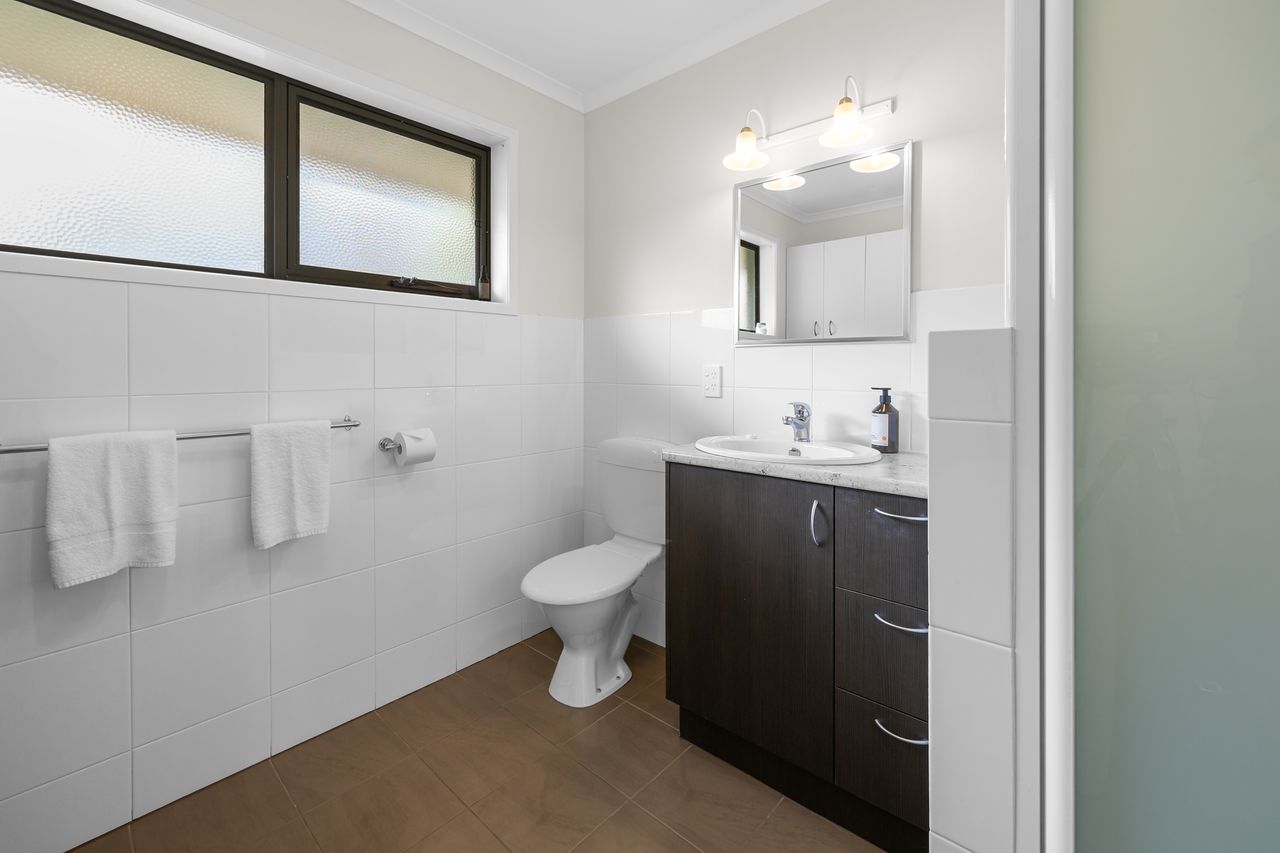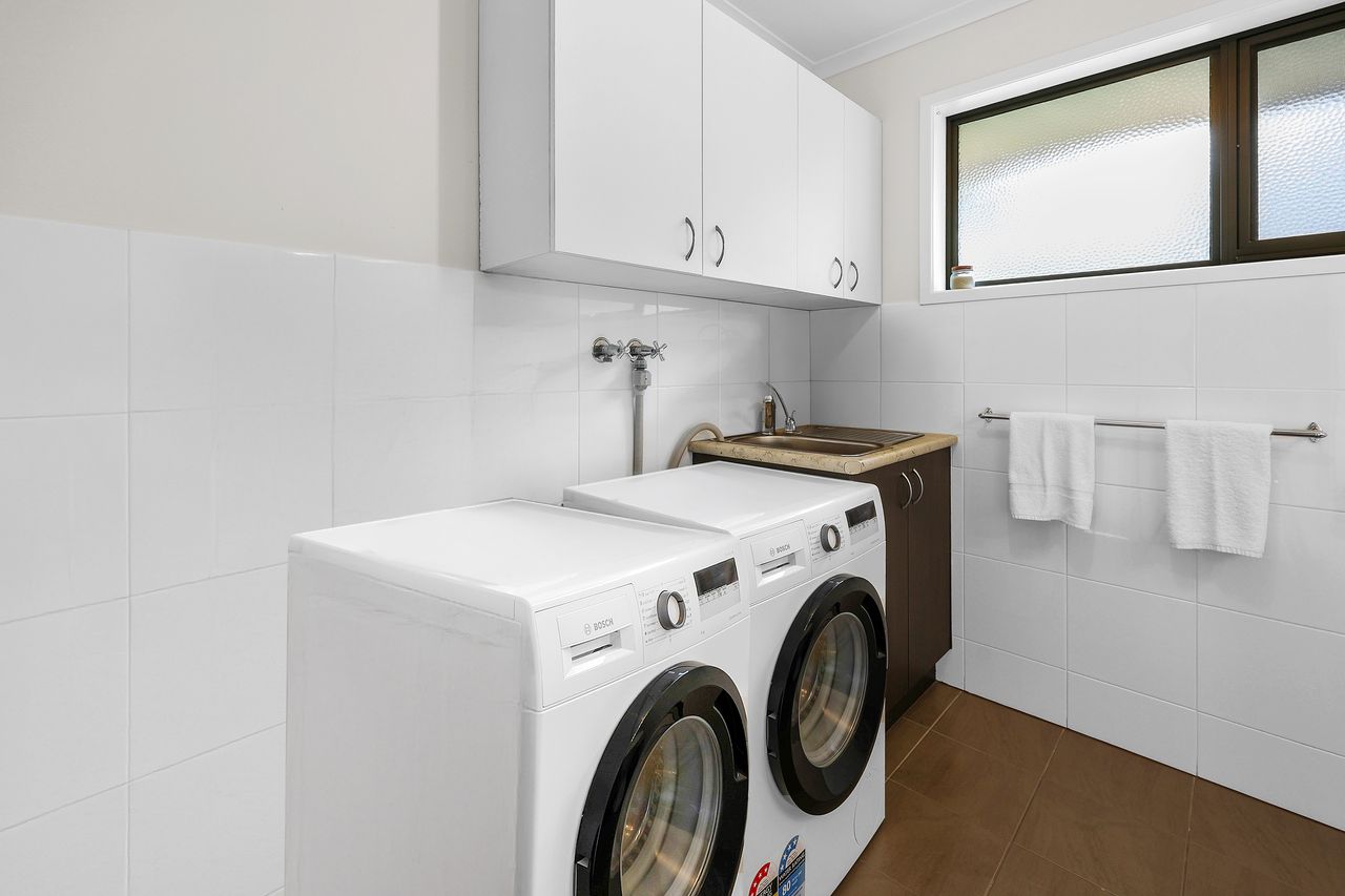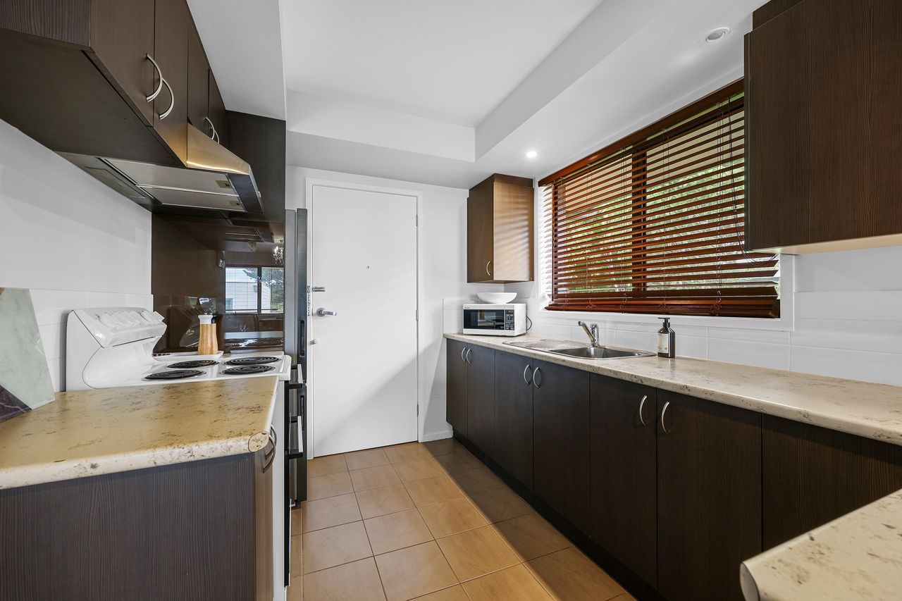 Entry and parking are available via Bayview Terrace. Step inside to a comfortable open-plan living, dining, and kitchen area that’s ideal for unwinding after a day exploring the beach or local shops. The kitchen is equipped with all the expect mod cons with plenty of cupboard and counter space.