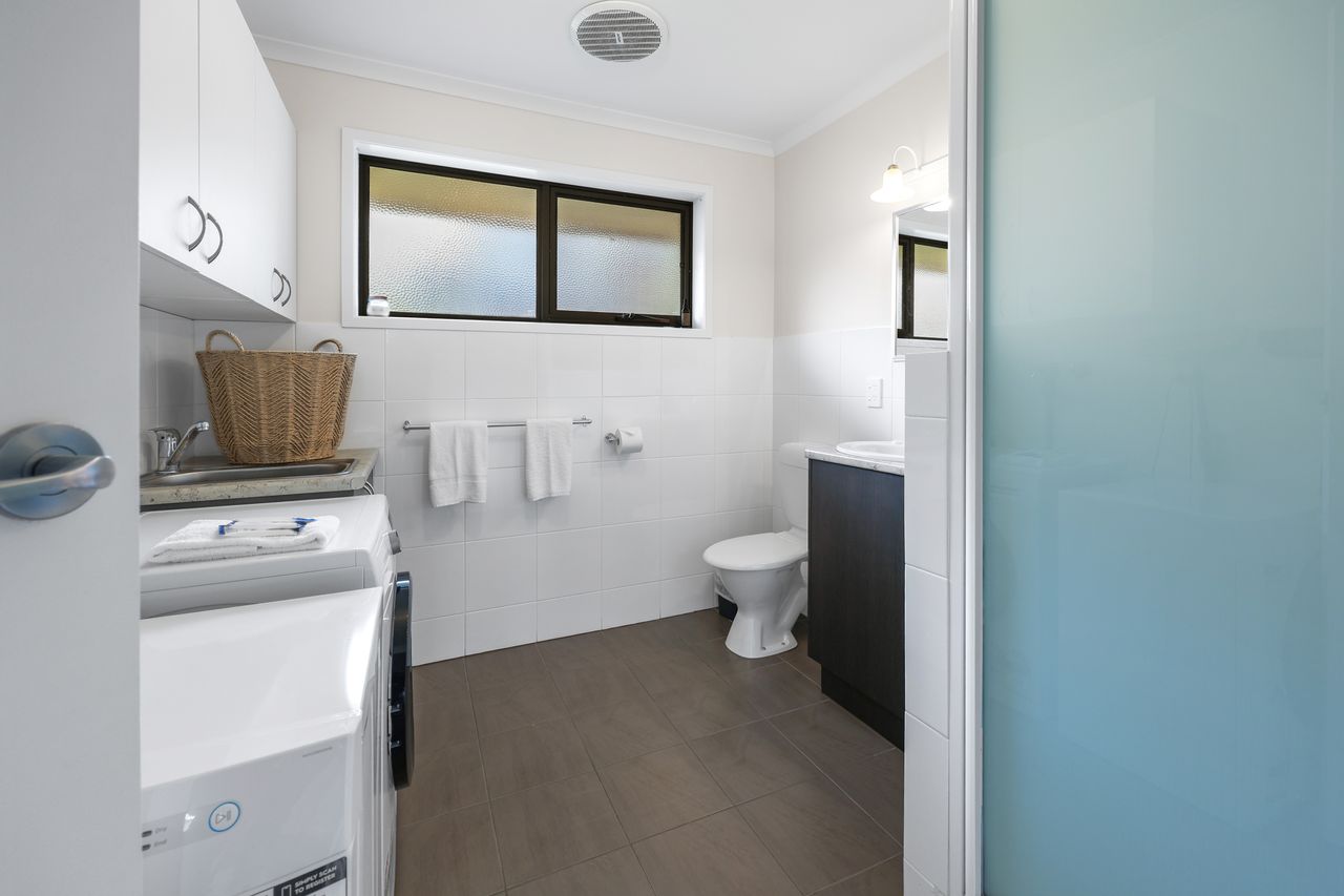 The main bedroom features a queen bed, while the second offers a single—perfect for a couple, small family or a couple of friends. The bathroom includes a shower and toilet, and you’ll also have access to a washing machine and dryer for your convenience.
