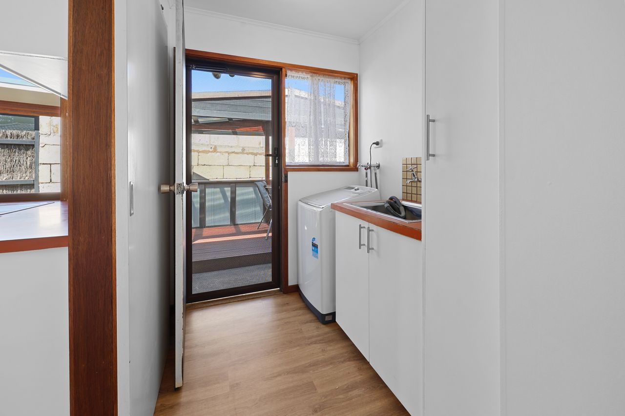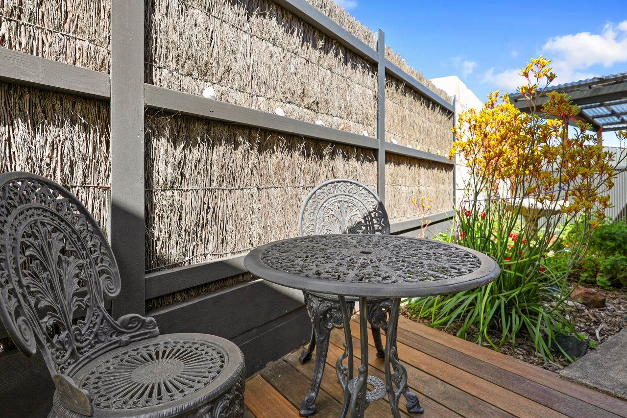 Through the kitchen, you’ll find the laundry with a washing machine and direct access to the outdoor area. This private side space features a pergola with a large outdoor table, chairs and BBQ - ideal for a barmy summer nights with the quiet hum of the town.