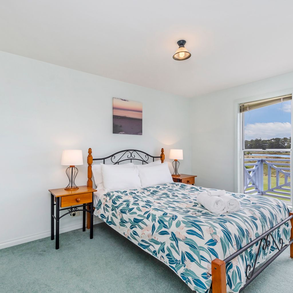The dining area has seating for 6, and there is outdoor seating on the back patio with a BBQ. The downstairs is equipped with a split system although even in winter the northern aspect of the property means you'll hardly need to use it! The outdoor area is the jewel in this crown, relax on the patio and enjoy the quiet of the river. With unbroken views of the Moyne, its an easy place to while away the hours watching the clouds drift over head and the ever changing river life on your doorstep.